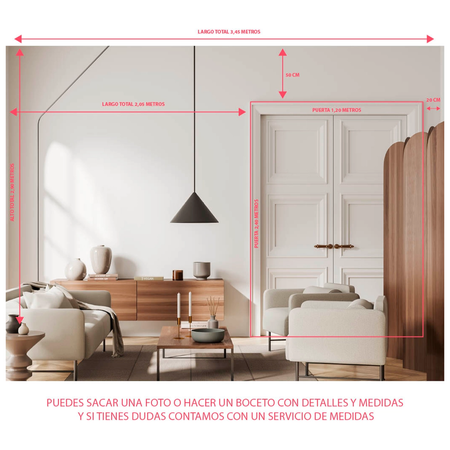 IMPORTANTE: medir con una huincha rígida e ir anotando cada muro con sus detalles (de izquierda a derecha), ayúdate de un dibujo artesanal o saca una foto y escribe las medidas y especificaciones encima de ella.